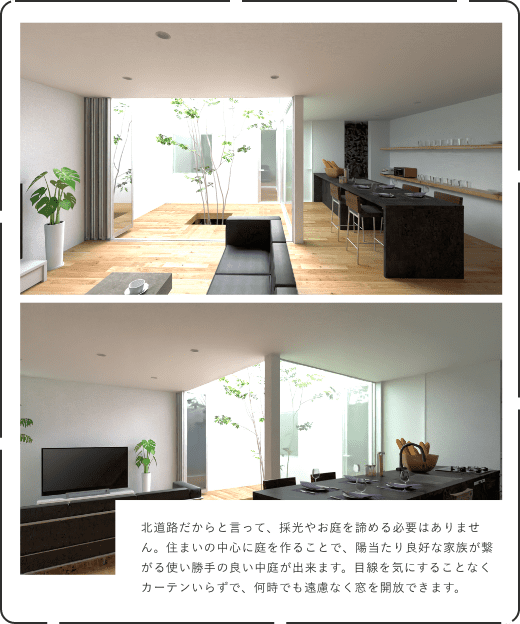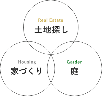 MITRAでは土地探し、家づくり、庭の三軸を基本に家づくりを行なっています。